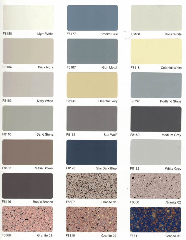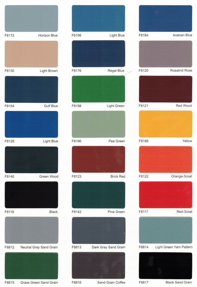 Hải Vân cung cấp nhiều lựa chọn về màu sắc và chất liệu hoàn thiện. Các mầu có sẵn theo bảng mầu bên dưới, các yêu cầu khác có thể thực hiện theo yêu cầu.