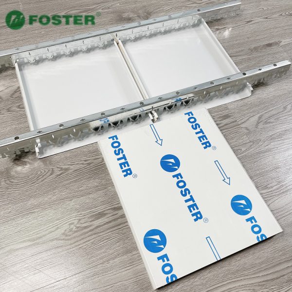 Hệ thống Trần nhôm Foster C300 gồm các tấm có bản rộng 300mm, được liên kết với thanh xương cài C300, tấm trần phủ sơn gia nhiệt PE, sơn tĩnh điện với nhiều mầu sắc đa dạng, độ dài tấm được sản xuất theo yêu cầu. Dễ dàng thi công lắp đặt, không yêu cầu dụng cụ máy móc phức tạp, tương thích với các loại đèn chiếu sáng, loa âm thanh, thiết bị PCCC, Camera…